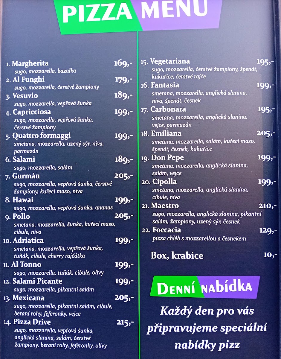 Welcome to pizza Drive Vojkov, nestled at U Chirany 105 in Tehovec-Mukařov, Czechia. This charming spot specializes in diverse pizzas, particularly their popular thirty-centimeter varieties featuring a delightful crust. Customers appreciate the convenience of enjoying their favorites right from the car. While some have noted occasional inconsistencies in quality—especially with quarter pizzas—many rave about the homemade bread and spicy pickled veggies that accompany their meals. While experiences may vary based on staff on duty, the overall vibe remains warm and inviting, making it a great stop for pizza lovers in the area.